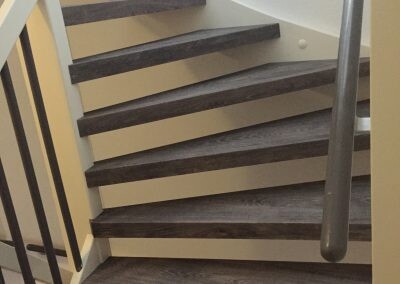 Hier enkele impressies van gerealiseerde projecten op basis van Forbo Allura pvc trapbekleding Brown raw timber